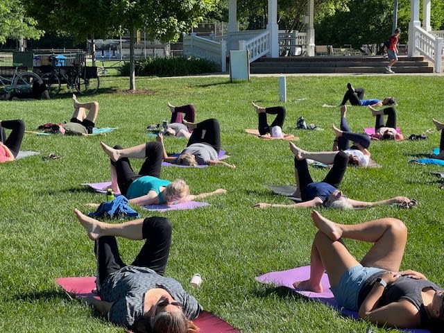 Join Blossom for fun and free yoga in the park from 9-10 AM. Gather with your friends and family in comfortable clothing. Please bring a mat or towel. Classes may be canceled due to inclement weather.Images