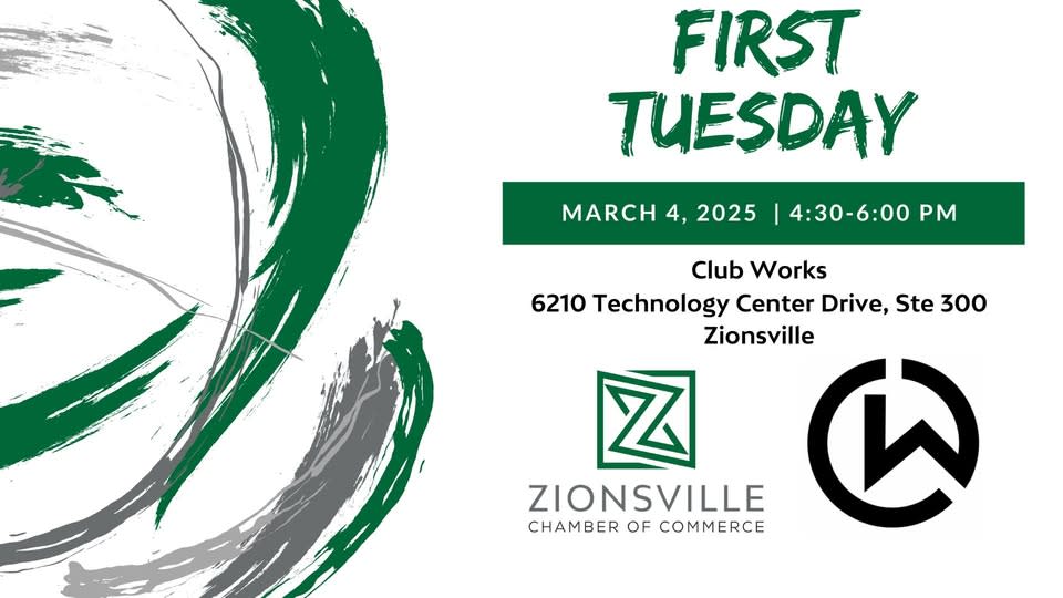 First Tuesday is a monthly networking event organized by the Zionsville Chamber of Commerce. Each month a different Zionsville Chamber member has the opportunity to host this event at their place of business or another location. First Tuesday brings businesses together in a fun, after-hours setting. This event is free for Zionsville Chamber members and first time guests. Registration is not required for this event.