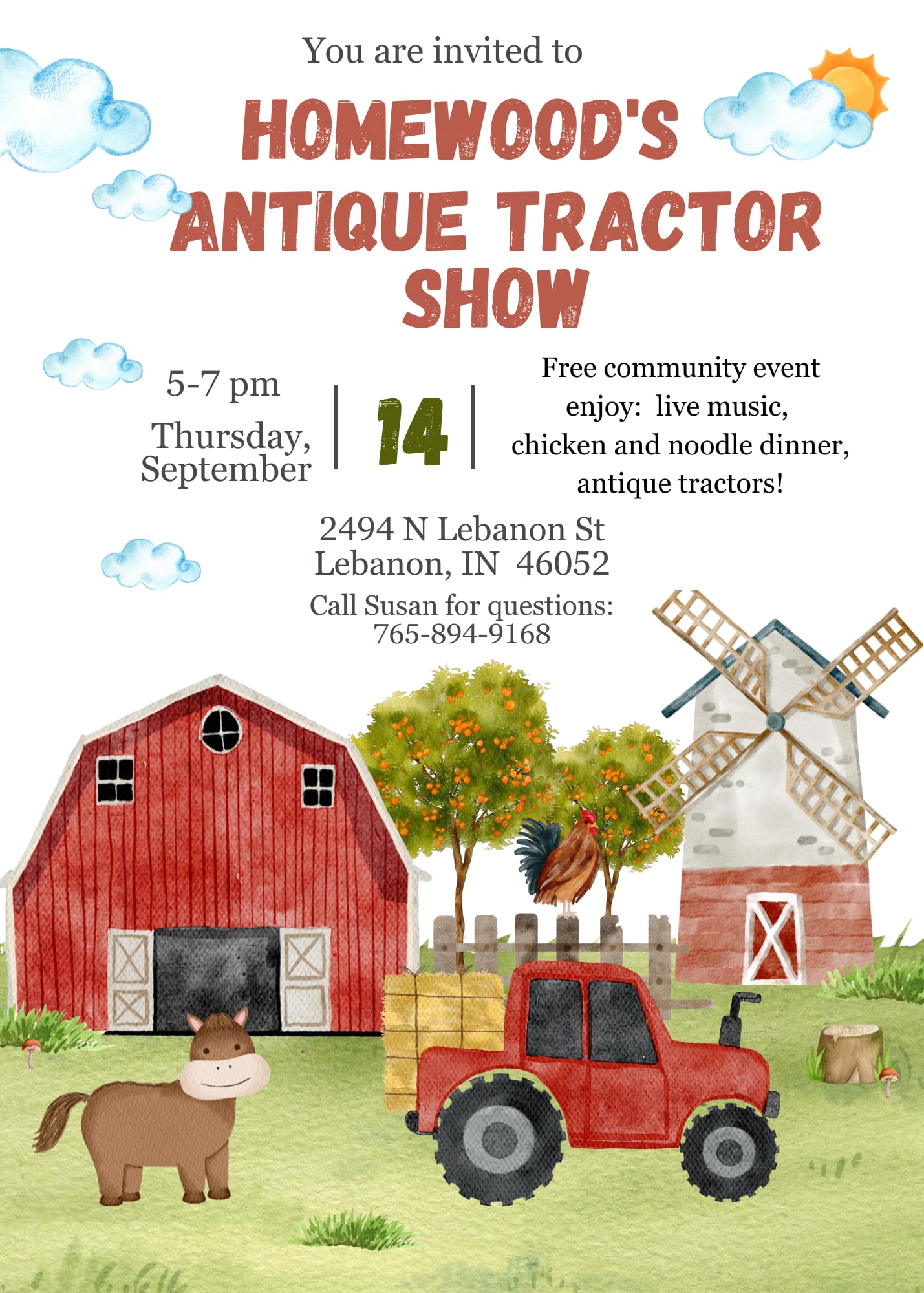 Free community event. Enjoy live music, chicken and noodle dinner, antique tractors.Images