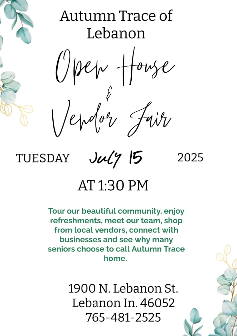 Autumn Trace of Lebanon is hosting an open house & vendor fair on Tuesday, July 15, 2025 at 1:30 PM. Tour their beautiful community, enjoy refreshments, meet the team, connect with businesses, shop from local vendors, and see why many seniors choose to call Autumn Trace home.Images