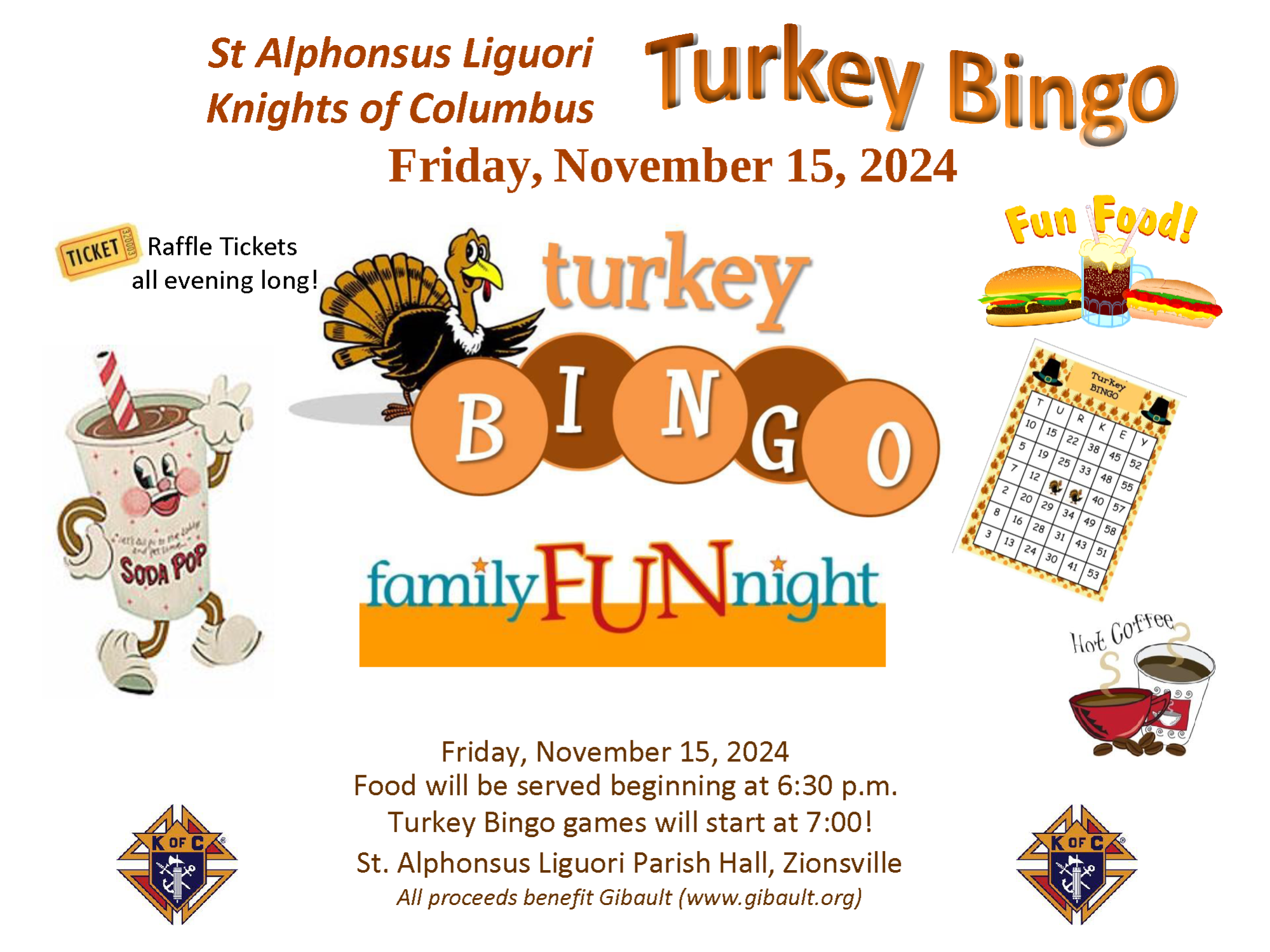 Join the Knights of Columbus at St. Alphonsus Catholic Church for a lively evening of bingo! The event is open to all ages, making it a perfect opportunity for families and friends to come together and enjoy a night of friendly competition. Participants will have the chance to win a variety of prizes, including frozen turkeys just in time for the holiday season.