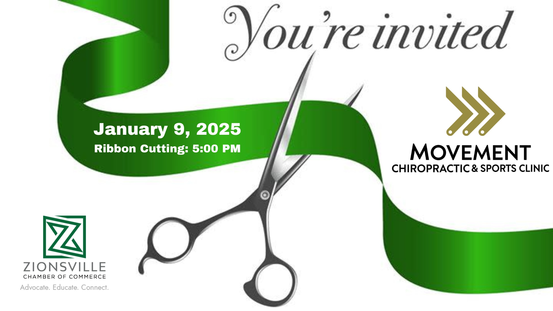 Join us to celebrate Movement Chiropractic & Sports Clinic in their beautiful new Zionsville location with a ribbon-cutting ceremony!